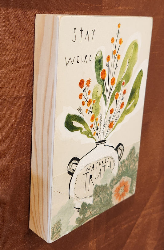 Stay Weird - Cori Dantini - mixed media: watercolor, ink, vintage paper