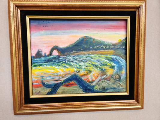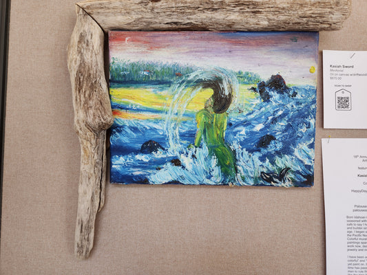 MerAerial - Kasiah Sword - Oil on canvas w/driftwood frame